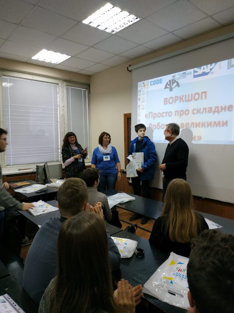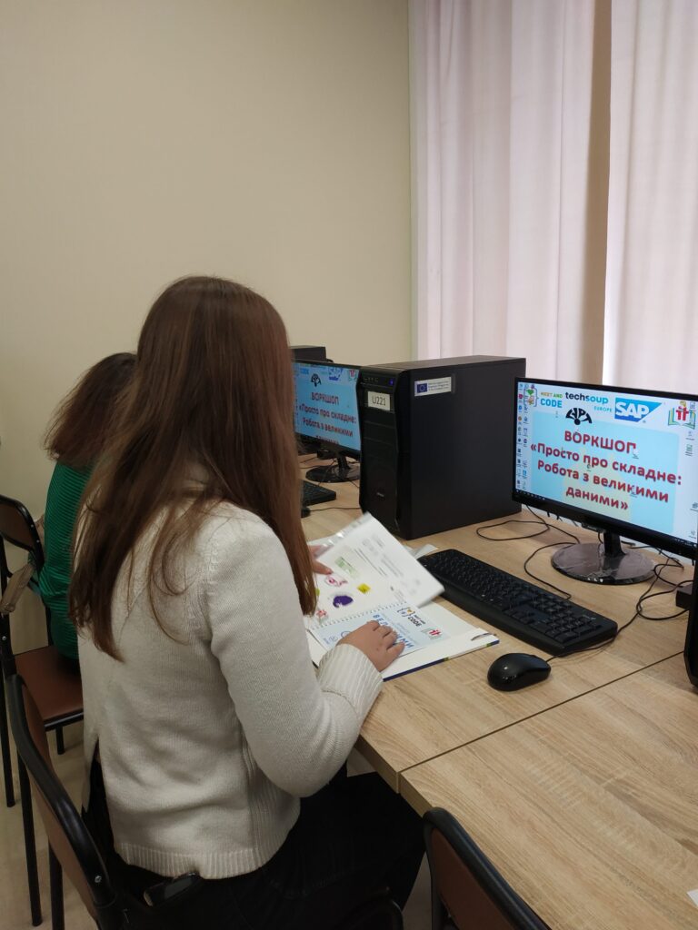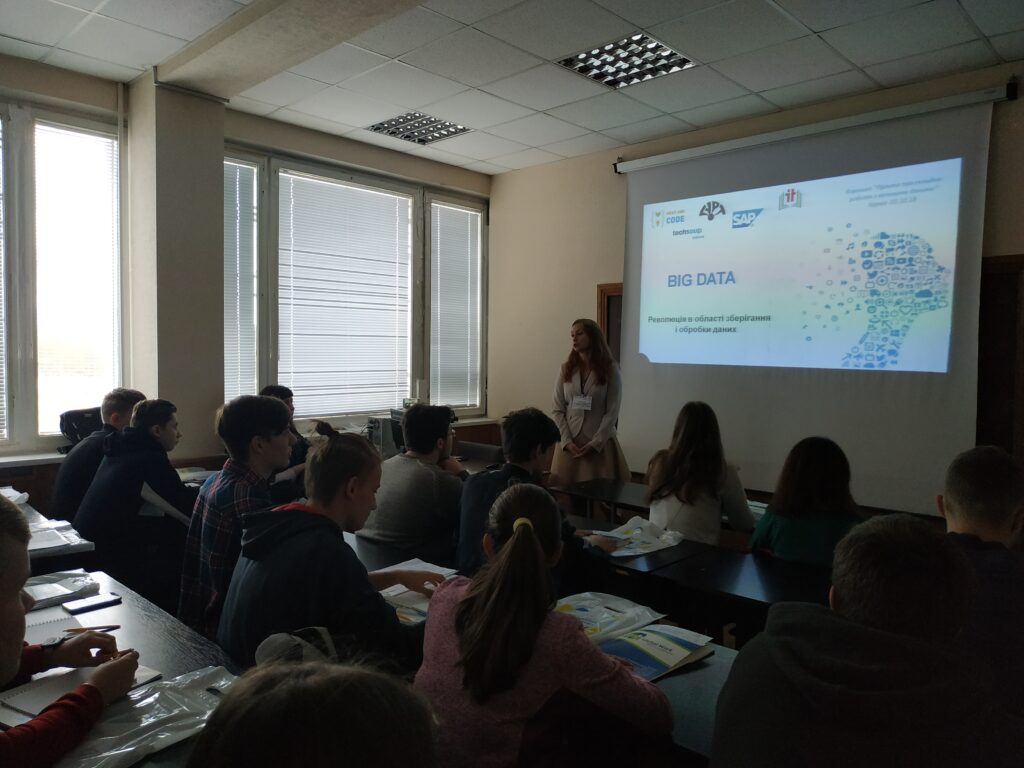 05 жовтня 2019 року відбувся перший Воркшоп «Просто про складне: Робота з великими даними» заходу, який організовано ГРОМАДСЬКОЮ ОРГАНІЗАЦІЄЮ “УКРАЇНСЬКЕ НАУКОВО-ОСВІТНЄ ІТ ТОВАРИСТВО” в рамках ініціативи “Meet and Code”, що впроваджується в Україні Ресурсним центром Гурт у співпраці з організаціями TechSoup Europe та Haus des Stiftens gGmbH за фінансування SAP.